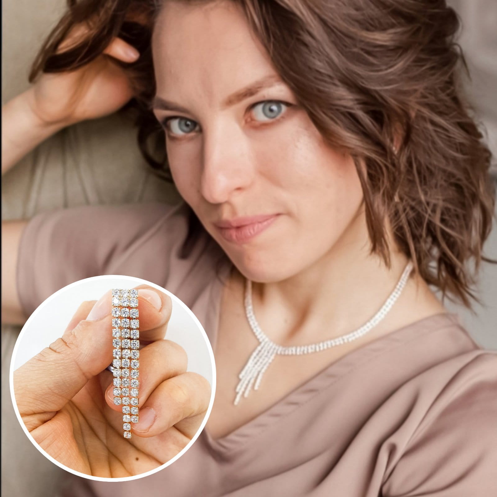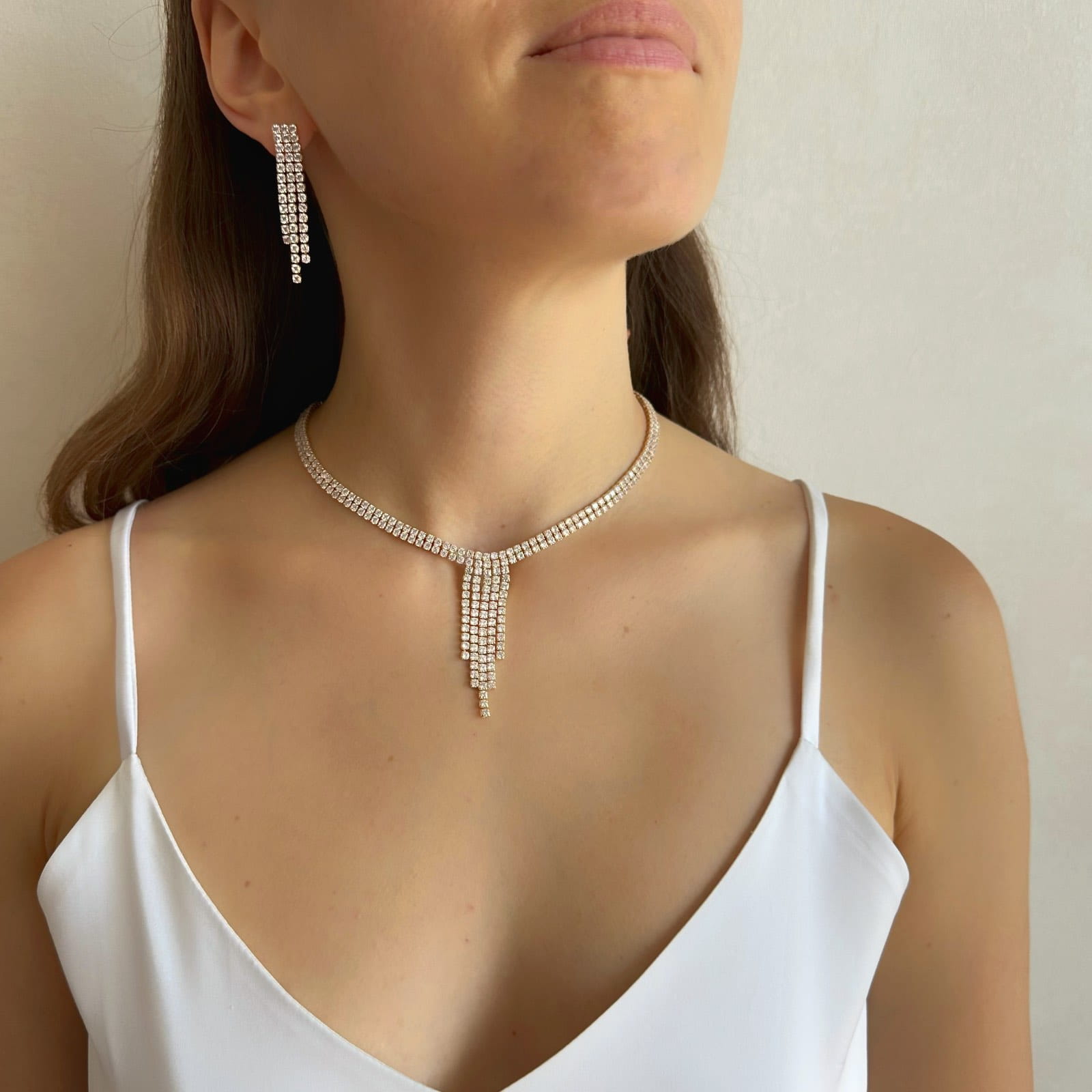 Pozłacany komplet biżuterii ślubnej (kolczyki i naszyjnik)