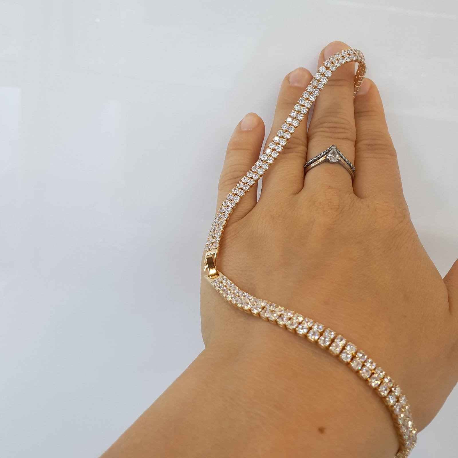 Komplet biżuterii ślubnej w złocie z białymi cyrkoniami marki YJ Yvette Jewelry nie zawiera niklu; został wykonany ze stopów jubilerskich techniką galwanizacji złota. Metoda ta opiera się na zanurzeniu stopu jubilerskiego w kąpielach galwanicznych metali szlachetnych. Powłoka złota podczas nakładania na stop tworzy dość grubą warstwę ochronną w celach zapobiegania korozji stopu znajdującego się pod nią. Dzięki powłoce galwanicznej komplet nie będzie zmieniał swojego koloru oraz zachowa piękny połysk przez bardzo długi okres czasu.