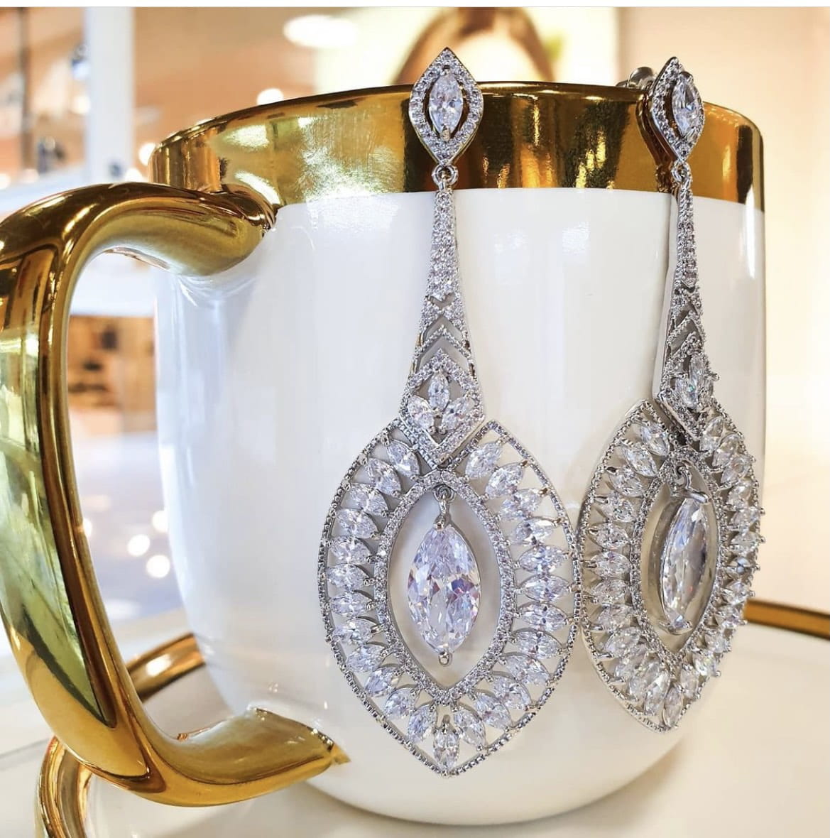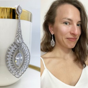 Ażurowe kolczyki ślubne w srebrze z motywem łezki marki YJ Yvette Jewelry nie zawierają niklu; są wykonane z antyalergicznych stopów jubilerskich oraz powlekane rodem, metalem szlachetnym z grupy platynowców droższym od złota i platyny. Dzięki takiemu sposobu produkcji kolczyki wyglądają jak z białego złota, nie śniedzieją a także zachowują swój piękny połysk przez bardzo długi czas.