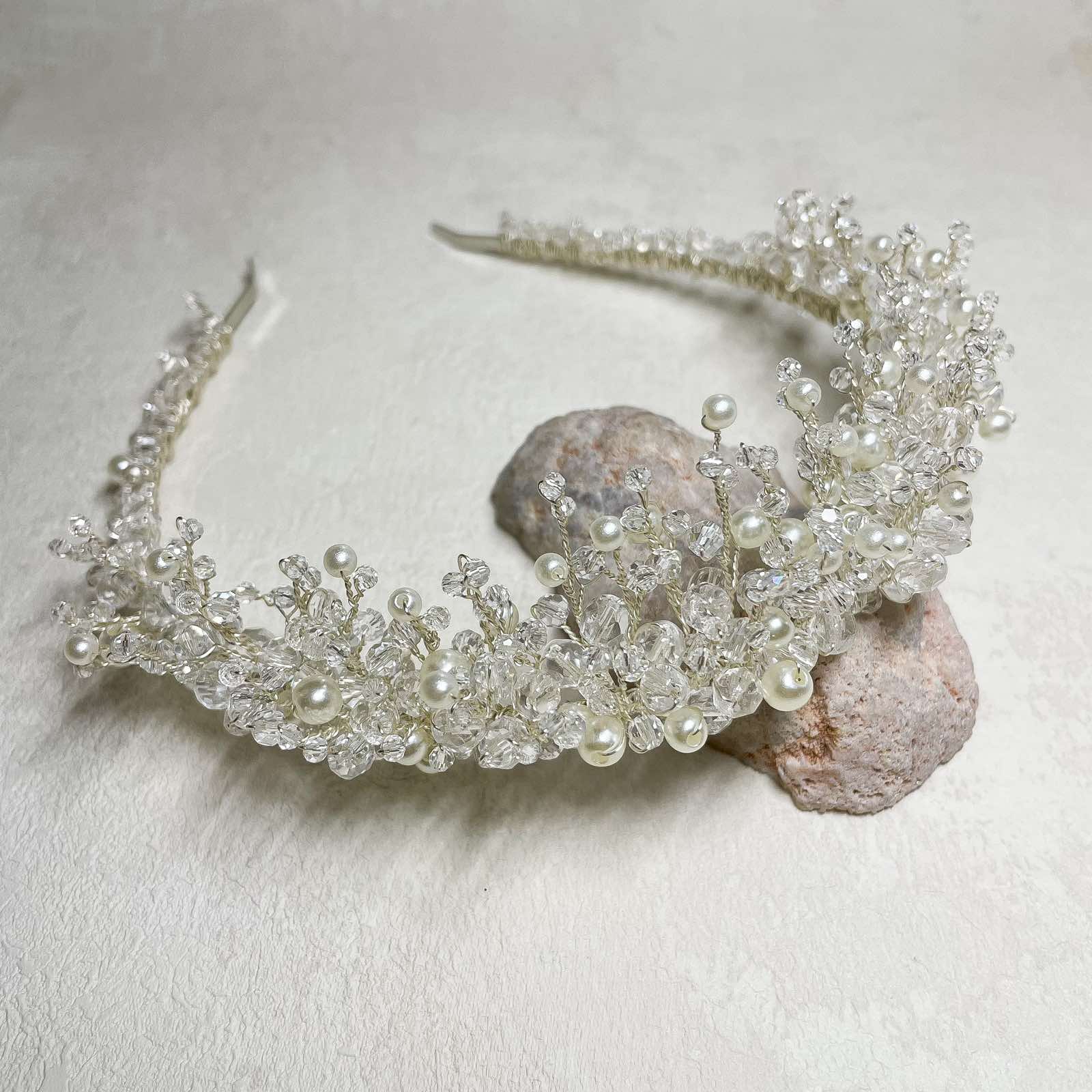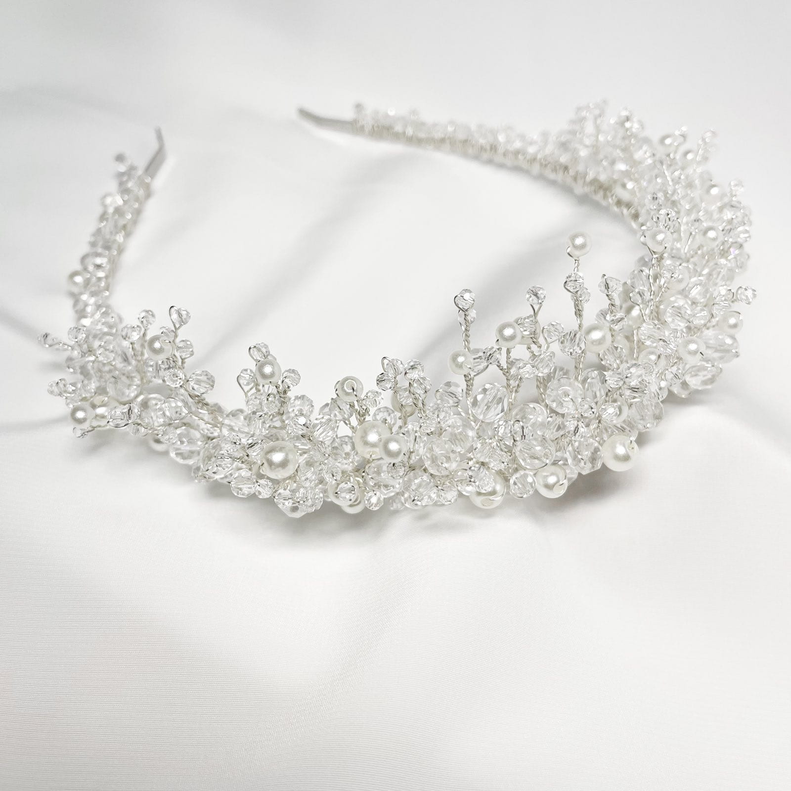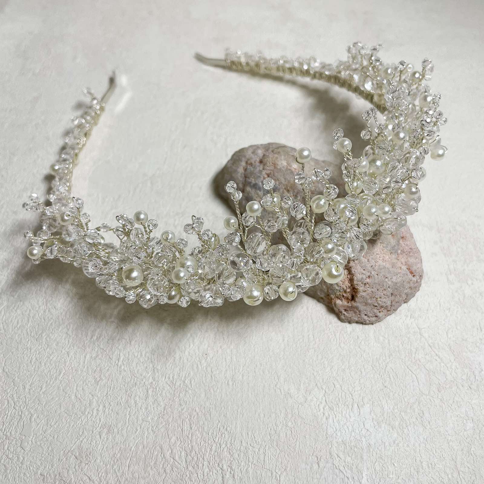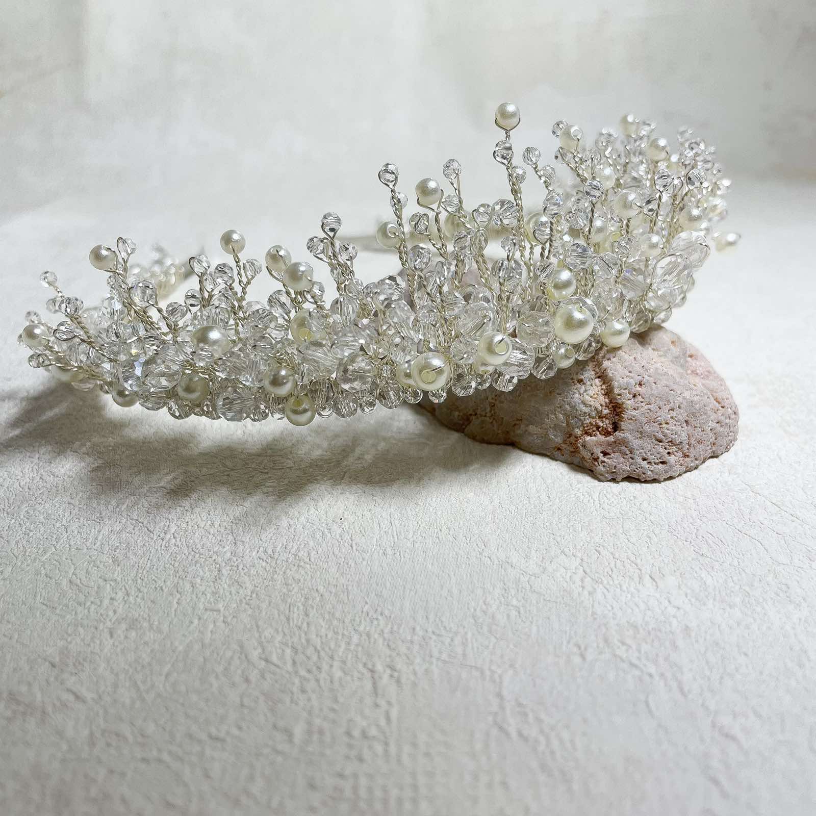 Tiara diadem ślubny , ozdob do włosów z koralikami ręcznie wykonana