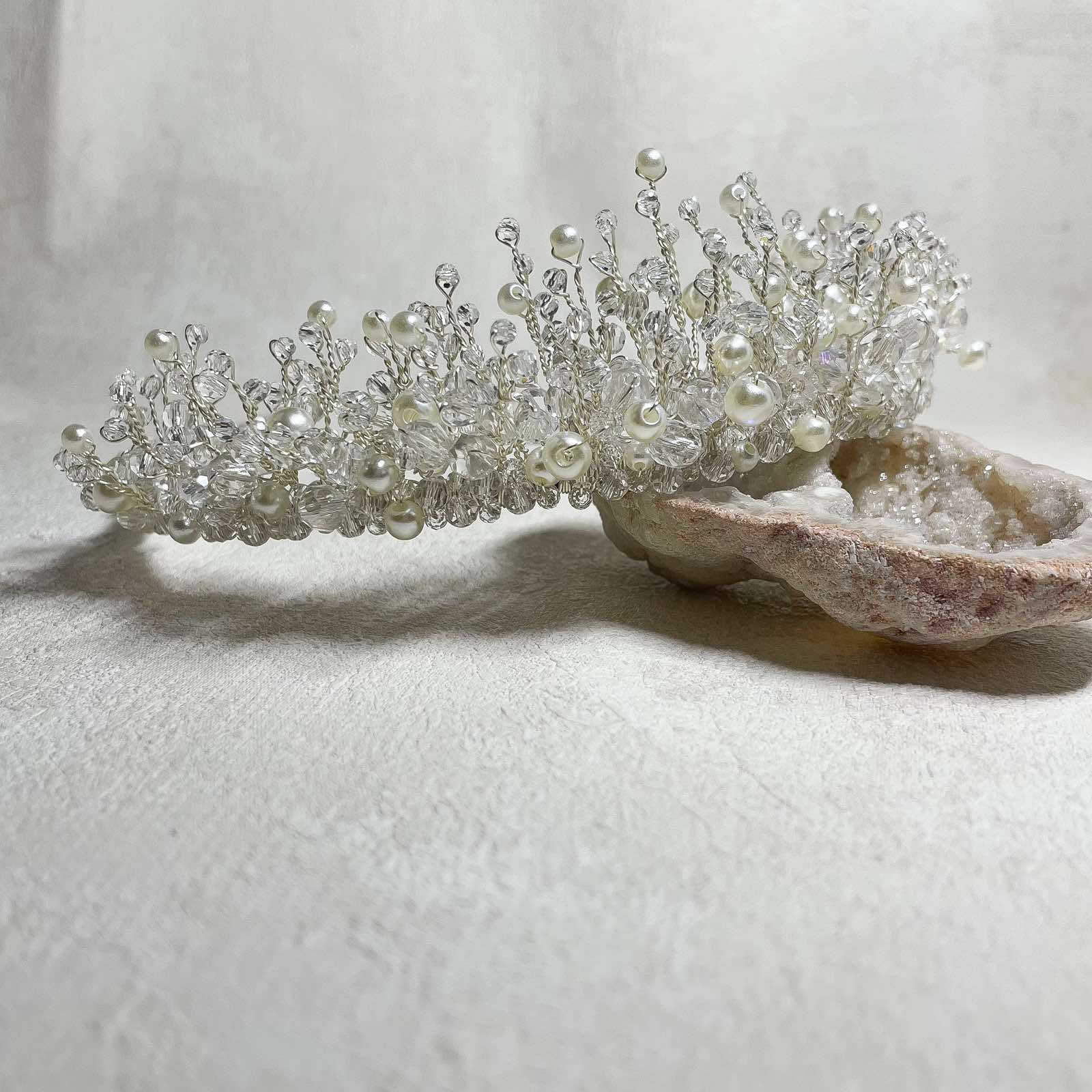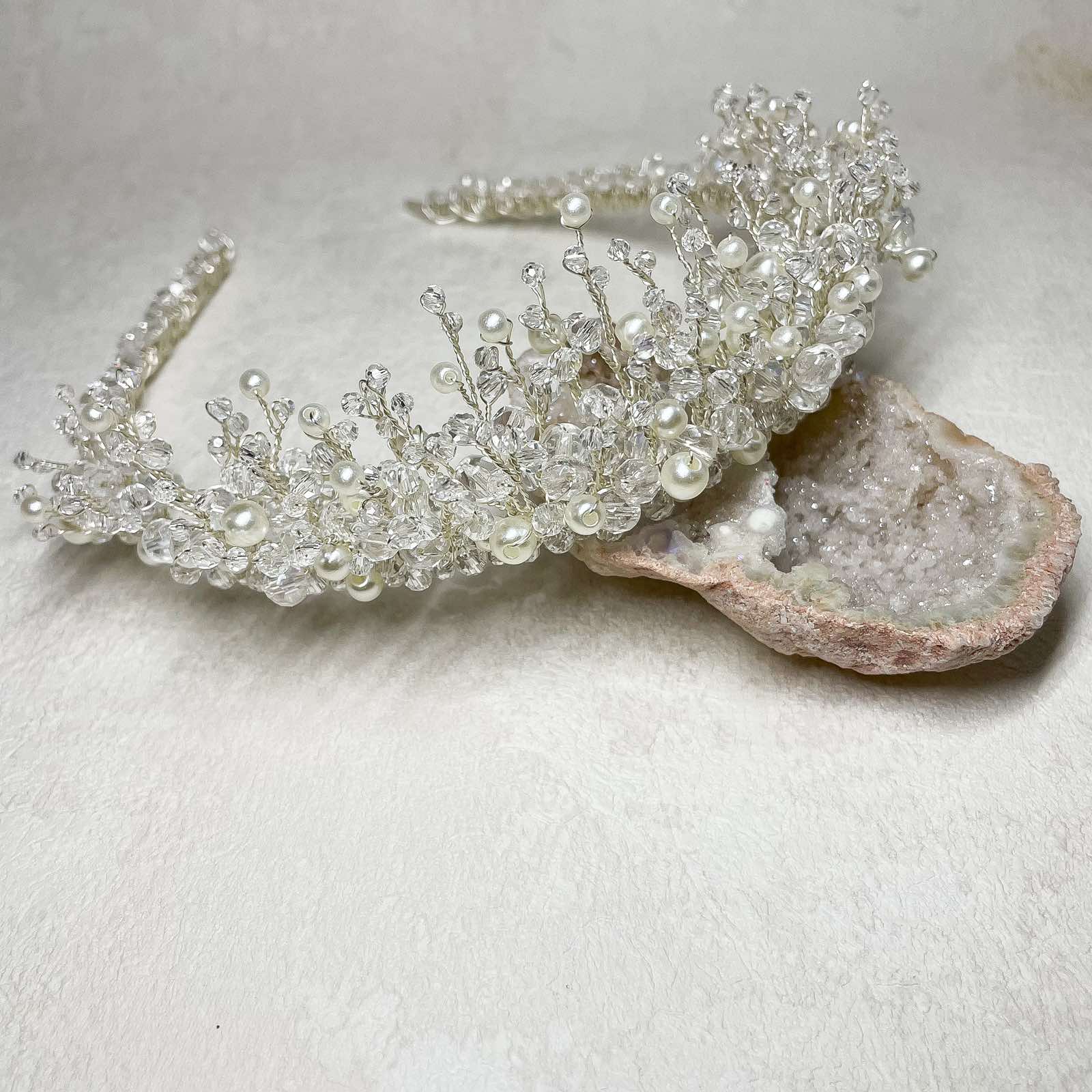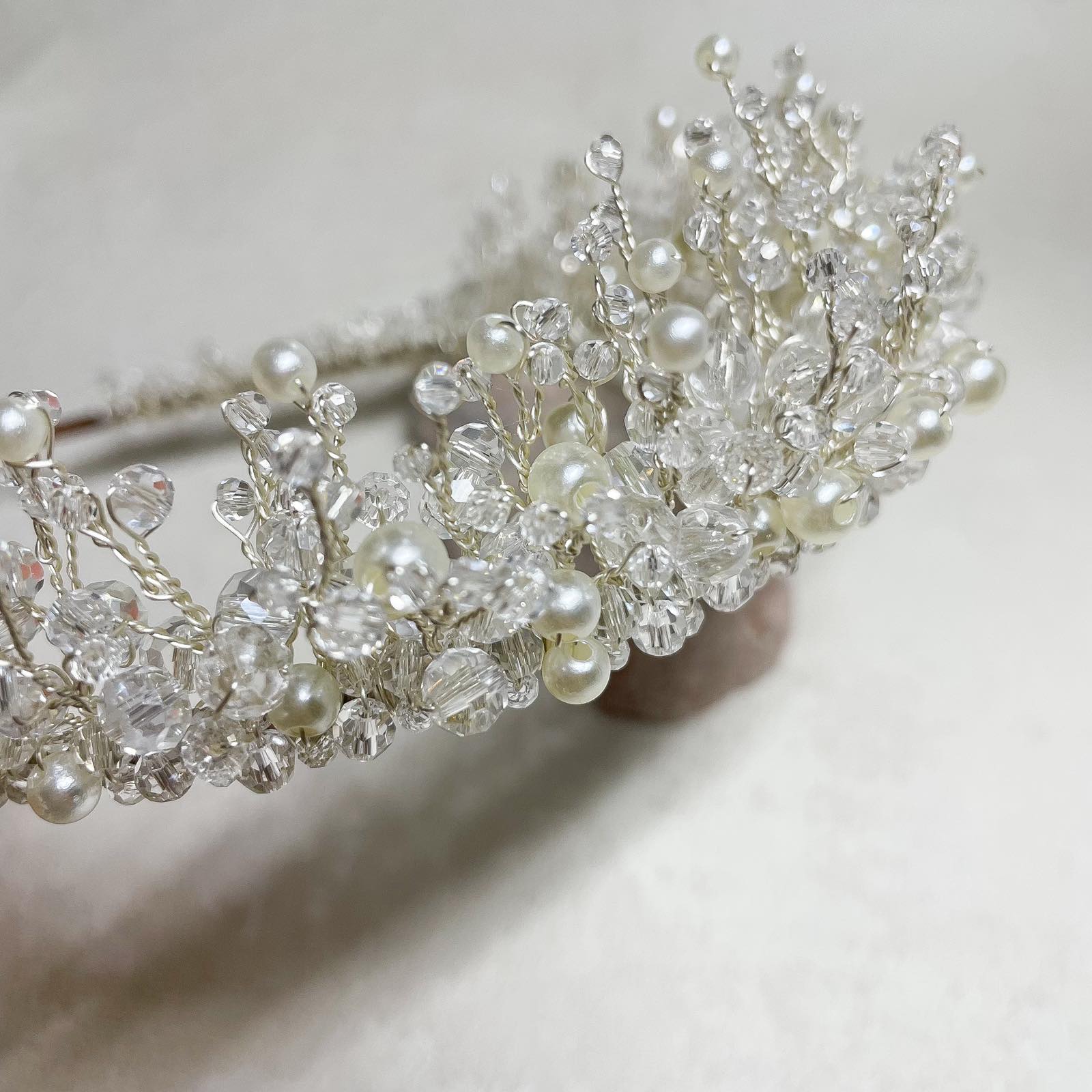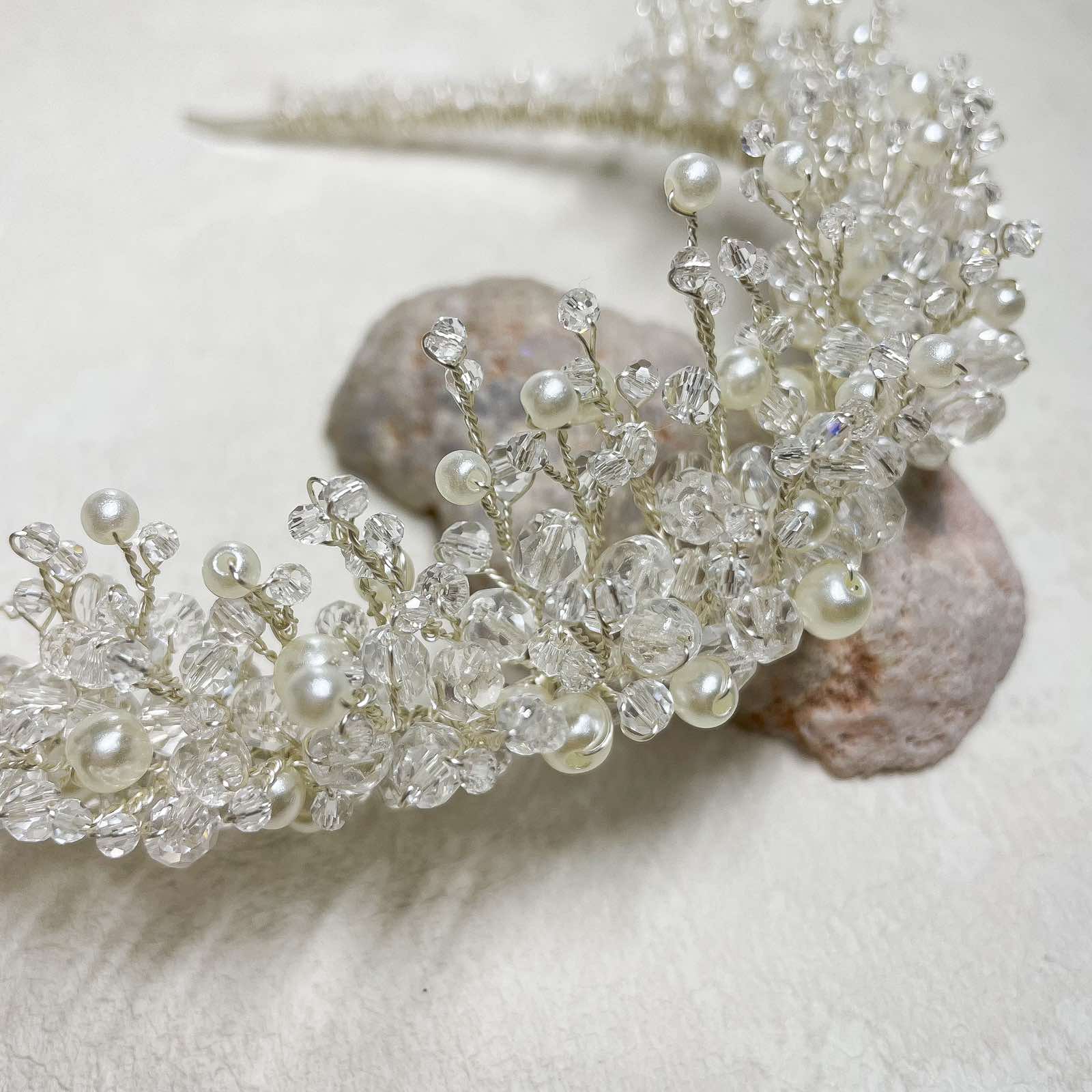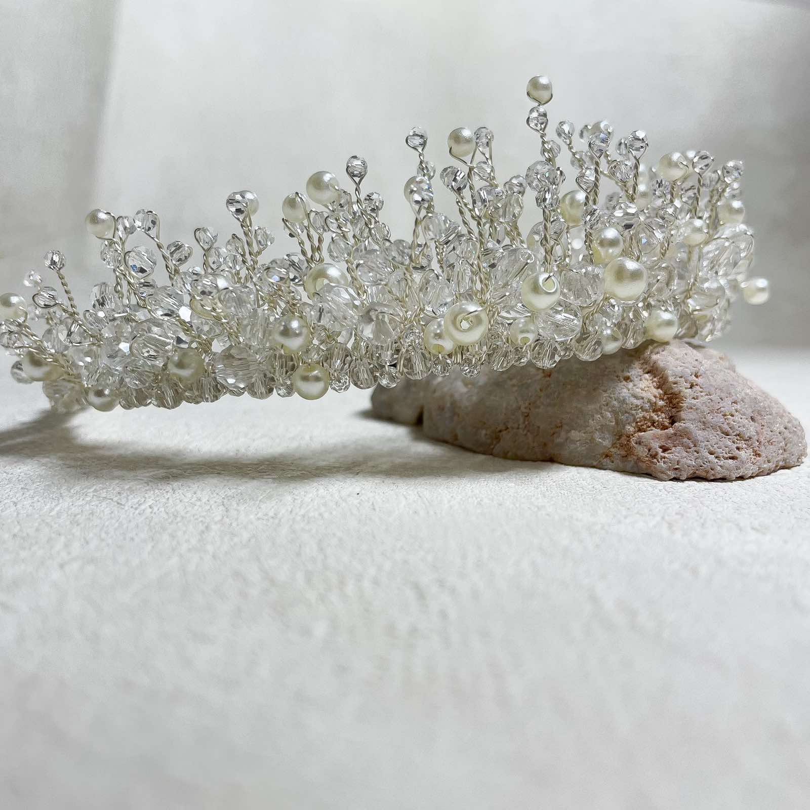 Tiara diadem ślubny , ozdob do włosów z koralikami ręcznie wykonana